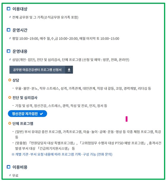 공무원 복지 마음건강센터 정보 및 신청 방법과 신청서
