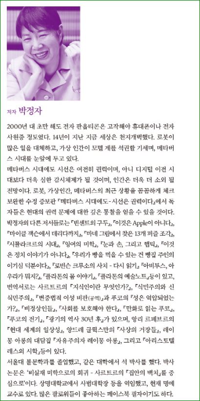 "권력은 왜 감시라는 방법을 선택했을까?" 박정자의 시선은 권력이다는 이 물음에서 시작해 시선과 권력의 본질을 파헤친다.