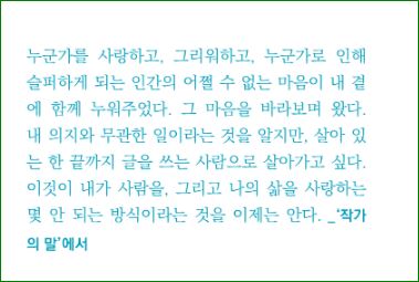 그래서 저는 이 책을 통해, 우리가 놓치기 쉬운 일상의 소중한 순간들을 조금 더 귀하게 여기기로 마음먹었답니다.