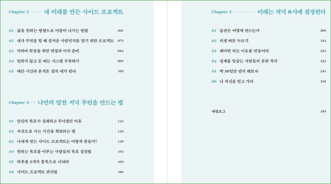 이 책을 읽으며 내가 앞으로 나아갈 방향과 계획에 대해 재정비하고 싶어졌습니다. 지금 당장 큰 변화를 이루기는 어렵더라도, 저녁 8시에 새로운 일에 도전하고 매일 한 발짝씩 성장하는 습관을 길러 보세요.