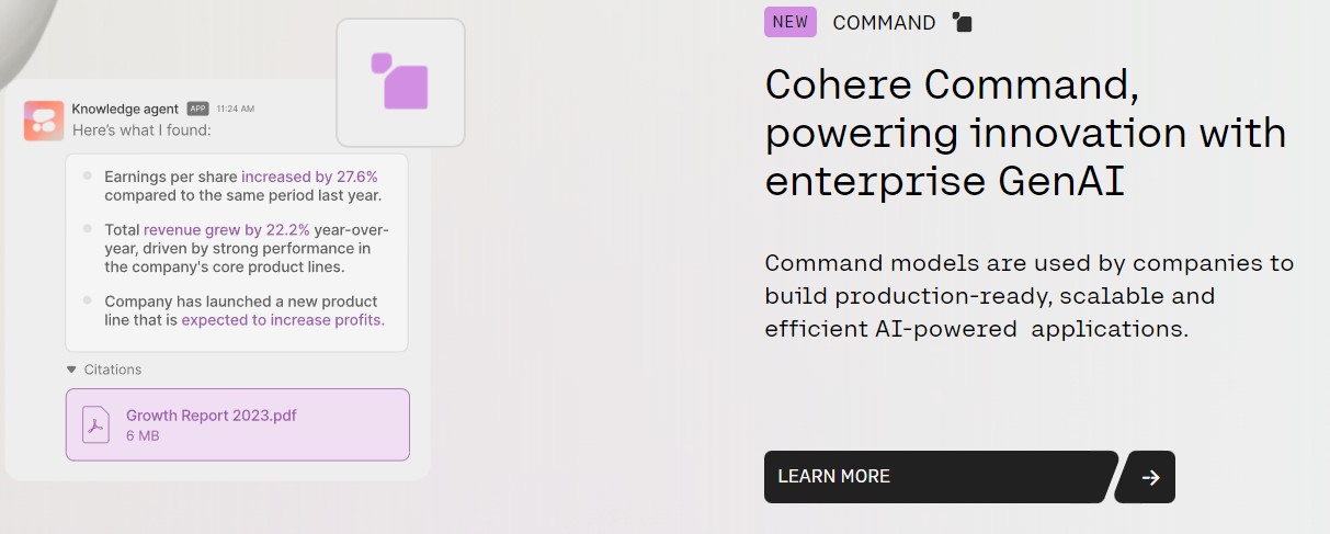 Cohere의 성공 요소 중 하나는 혁신적인 AI 기술을 빠르게 상용화한 점이며, 특히 대화형 AI 모델의 경우, 특정 산업군에서 이미 성공적인 도입 사례를 만들어냈습니다. 예를 들어, 금융 분야에서는 자동화된 고객 상담 솔루션을 제공해 보험이나 대출 관련 질문에 신속히 대응할 수 있도록 돕고 있는 것이지요. 이 외에도 법률(변호사) 서비스에서는 복잡한 법률 문서를 분석하고 요약하는 데 큰 기여를 하고 있습니다.